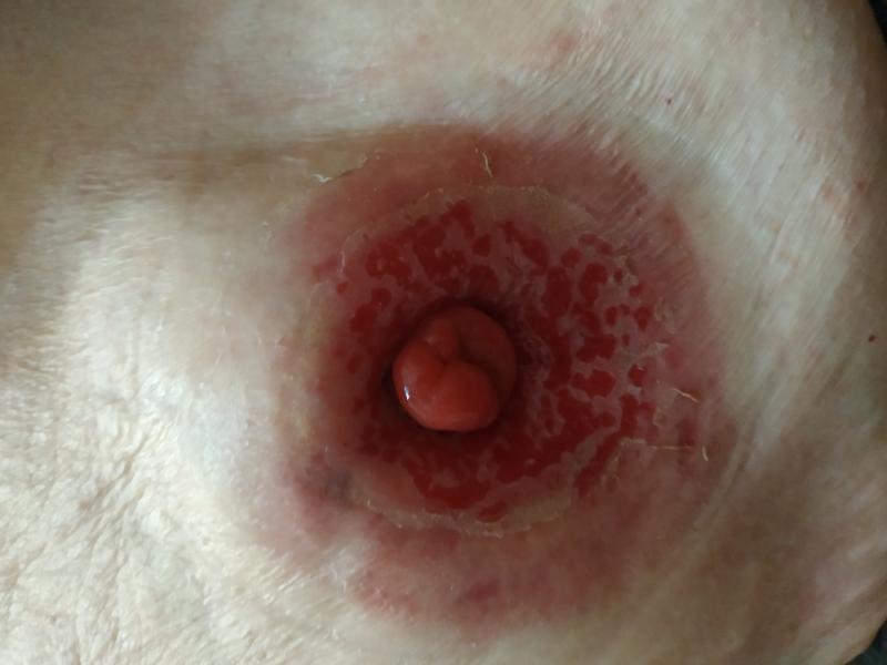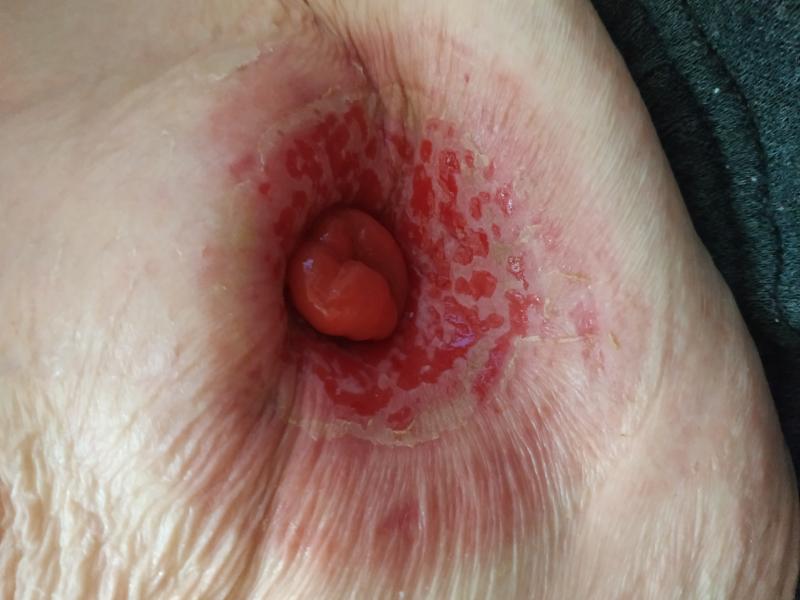 Вы не написали, какая у Вас стома, какая была операция, когда и по какому поводу была операция. На фото тоже не указано, в каком положении пациентки они сделаны - стоя, сидя, лежа. Но все же видно,что стома втянутая и зона повреждения кожи - перистомальный дерматит соответствует зоне втянутости. А это значит, что нужна специальная конвексная пластина. Что нужно делать в Вашем случае см. в прикрепл. файле.