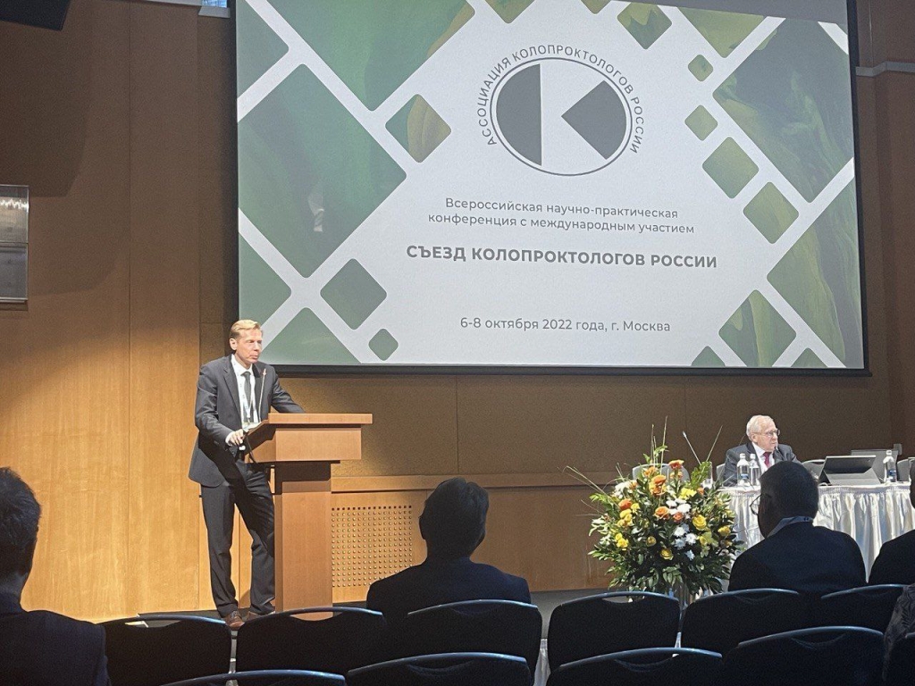 Был очень интересный доклад с новаторской темой по формированию интрамускулярной одноствольной колостомы, с результатами пилотного многоцентрового исследования, представленного Москалевым Алексеем Игоревичем, к.м.н., г. Москва.