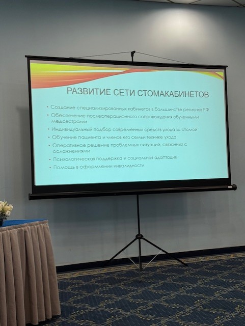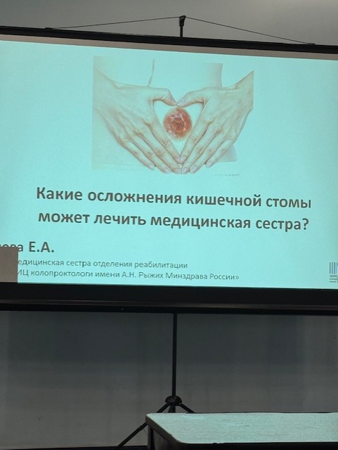 После перерыва Калашникова Ирина Анатолиевна, к.м.н., г. Москва, представила интереснейшую презентацию с уникальными методами: «Осложнения стомы и лечение ран у пациентов колопроктологического профиля». И сразу после нее Попова Елена Анатольевна, г. Москва, сотрудник Отделения реабилитации стомированных больных НМИЦ колопроктологии имени А. Н. Рыжих», выступила с презентацией: «Какие осложнения кишечной стомы может лечить медицинская сестра?».
