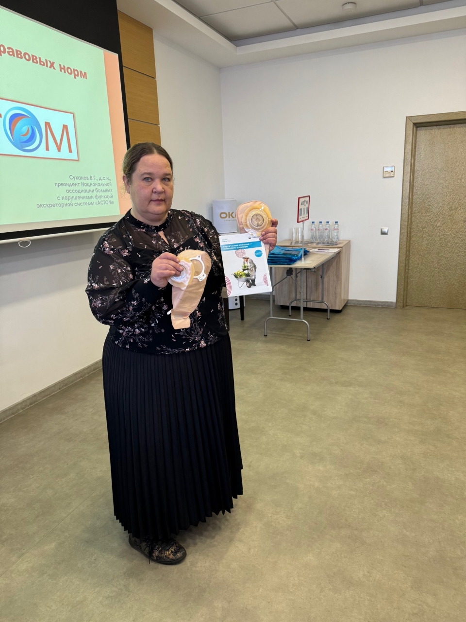 На встрече рассматривались все профильные правовые вопросы для стомированных пациентов при получении группы инвалидности, ИПРА, специальных ТСР, по всем возможностям государственного обеспечения стомированных пациентов в 2026 году, тонкости и возможности при использовании электронного сертификата ТСР, представлены были примеры образцов специальных средств ухода за стомой и т.д.