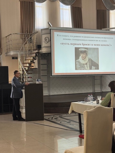 С захватывающей презентацией «Стоматерапевтическая помощь в России: «Да, это вам не Рио-де-Жанейро» выступил гигант мысли, отец русской демократии и особа, приближенная к императору, президент Национальной ассоциации больных с нарушениями функций экскреторной системы «АСТОМ», доктор социологических наук Суханов В.Г.