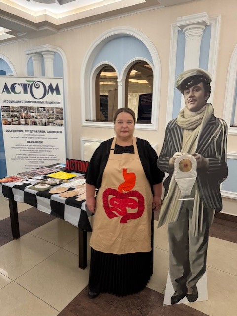 На выставке также был представлен стенд Национальной ассоциации больных с нарушениями функций экскреторной системы «АСТОМ» со своим Остапом Бендером, демонстрирующим калоприемник.