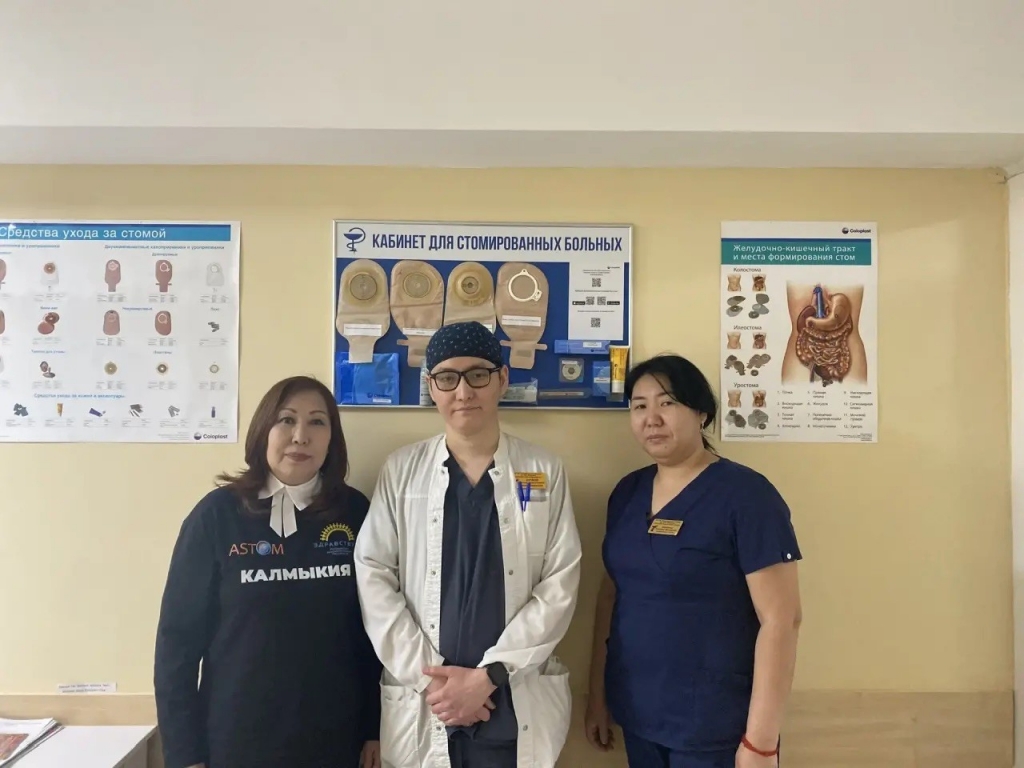 Также большую поддержку и непосредственное участие в создании службы медицинской помощи стомированным пациентам в Республике Калмыкия оказали президент Национальной ассоциации больных с нарушениями функций экскреторной системы «AСТОМ», д.с.н. Суханов В.Г. и вице-президент Назарова Д.А.