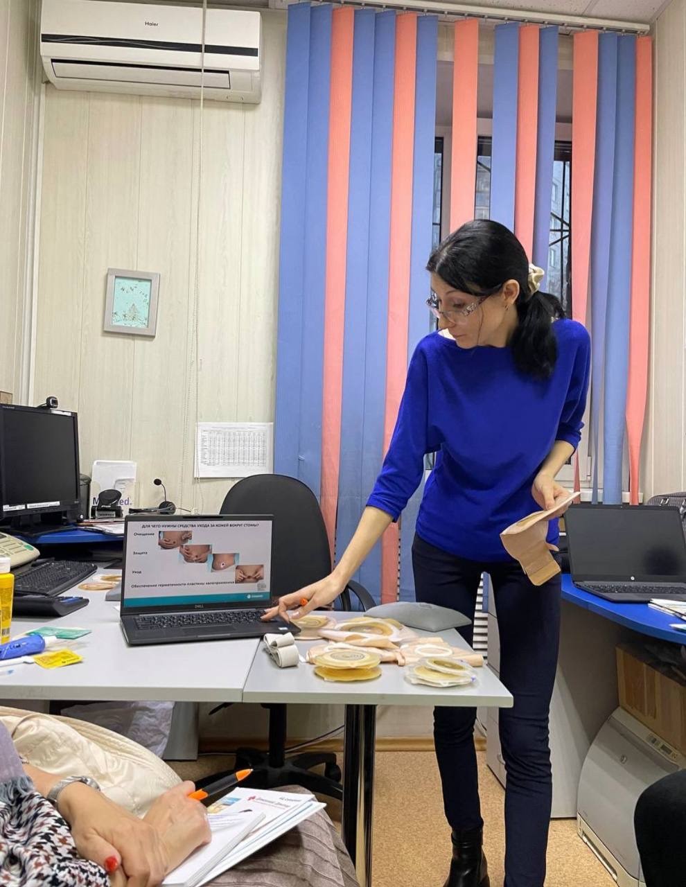 Рассматривались вопросы индивидуального подбора специальных средств ухода за стомой (ТСР), возможности внесений изменений в индивидуальную программу реабилитации (ИПРА), вопросы по оформлению электронного сертификата ТСР. Пациенты получили много полезных советов и консультации специалистов.