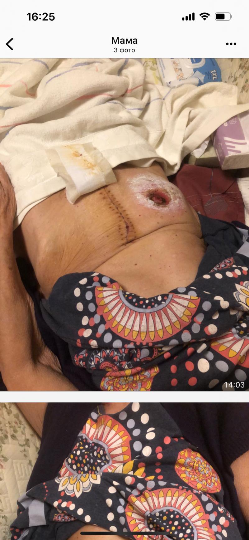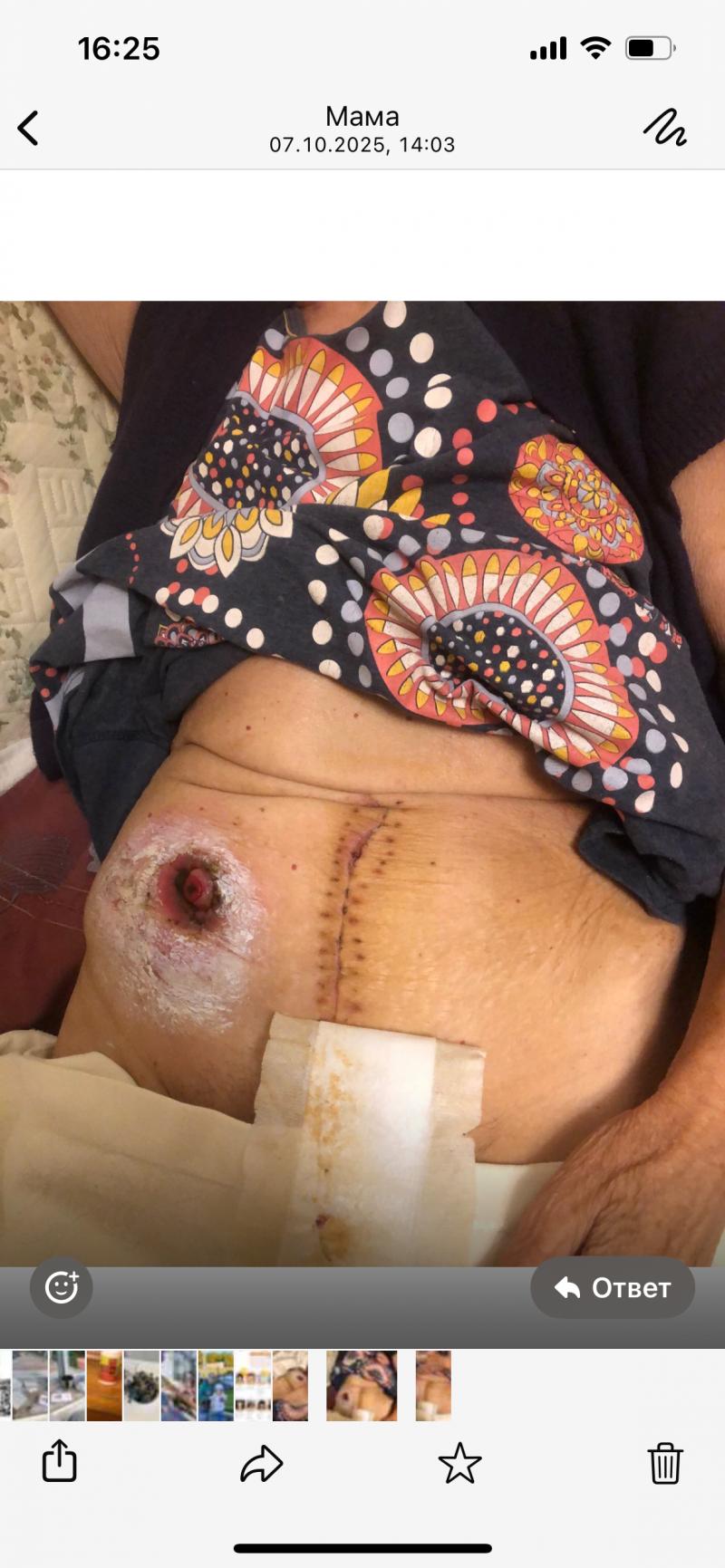 Судя по предоставленным фото, у Вас втянутая стома, вероятнее всего, илеостома. Вы не написали, какая операция и по какому поводу была сделана операция Вашей маме. Вы также не написали, какими средствами ухода за стомой Вы пользовались и располагаете.
